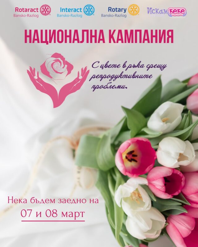 Националната благотворителна инициатива „С цвете в ръка срещу репродуктивните проблеми“ ще се проведе на 7 и 8 март 2026 г. в Разлог и Банско. Кампанията се организира от Ротаракт и Интеракт клубовете в България съвместно с Фондация „Искам бебе“, с подкрепата на Община Разлог. В Разлог инициативата ще се състои пред сградата на Общината, а…